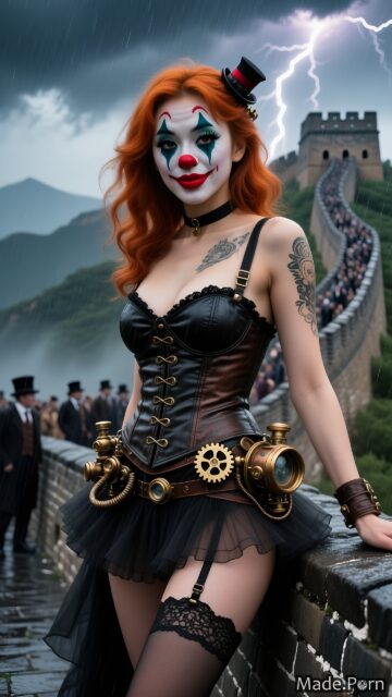 31997 Japanese Girlspublic Great Wall of China clown pouting lips woman ginger thunderstorm created by AI by Erotic-AI